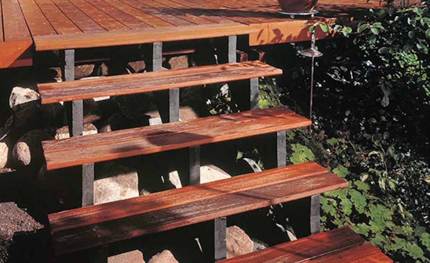 En drøy tusenlapp for hele trappen med sju trinn i trykkimpregnert furu. Med bankirai cirka 3000 kroner.