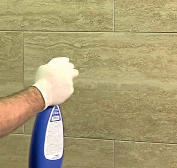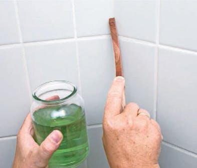 Vask flisene første gang med varmt vann og en hard svamp. Ha et ekstra spann med varmt vann klart, og skyll svampen i det en gang iblant. Vask andre gang med en myk svamp og varmt vann tilsatt rødsprit. Husk det ekstra spannet til rengjøring av svampen. Vaskevannet skal håndteres som kjemisk avfall.