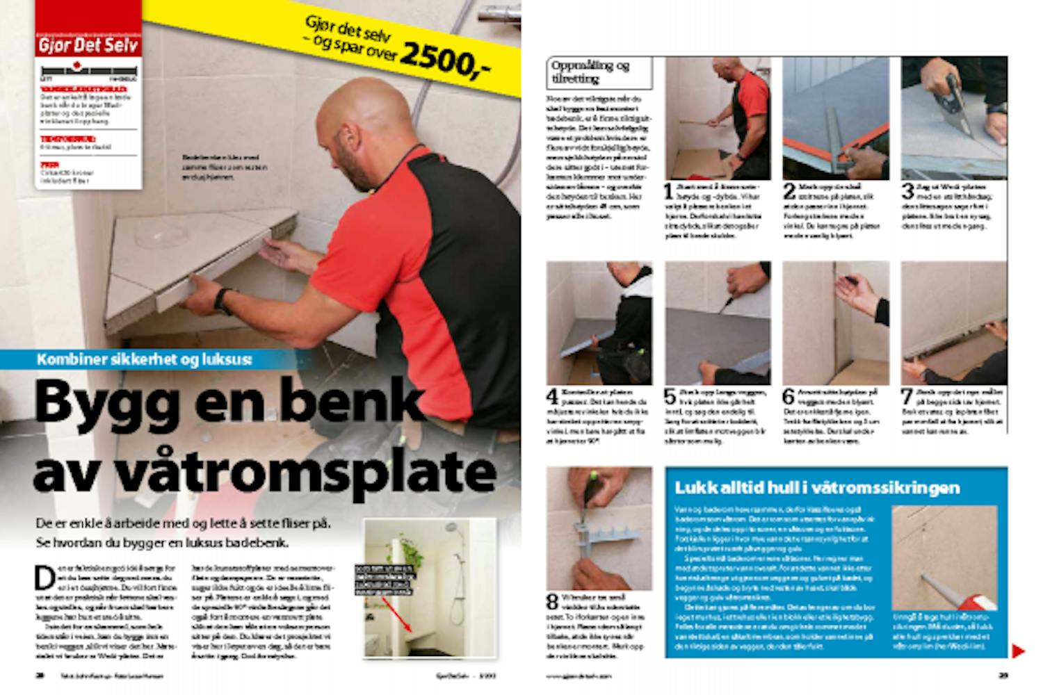 Det er enkelt å lage en badebenk når du bruger Wediplater og de spesielle vinklene til oppheng.
