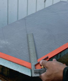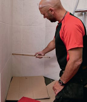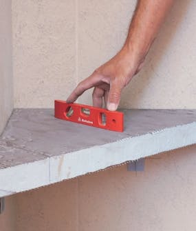 Strek opp det nye målet på begge sider av hjørnet. Bruk et vater, og la platen få et par mm fall ut fra hjørnet, slik at vannet kan renne av.
