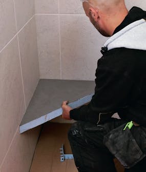 Du trenger ikke å kle undersiden av benken, da Wedi-platen ikke er vannsugende, men du kan fint gjøre det hvis du har lyst.