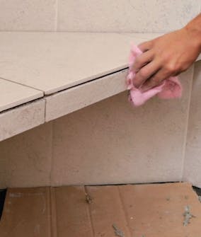 Rengjør flisene når de sitter som de skal. Du kan bruke litt eddik til rensingen. Tørk etter med rent vann, til eddiken er fjernet.
