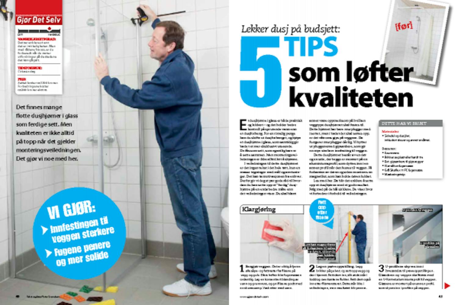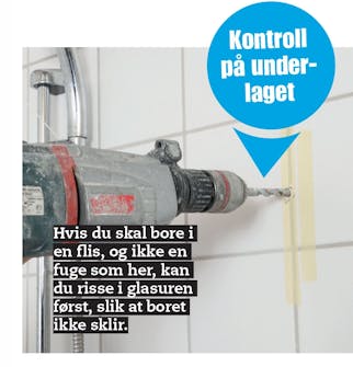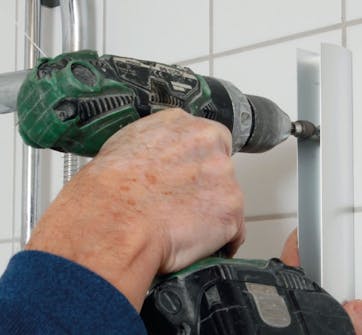 Når du skal bore ut til U-profilen på veggen, er det viktig at du vet hva veggene er laget av. Her er det våtromsgips under flisene, men pluggene som følger med settet er beregnet til murverk. Og murplugger egner seg ikke til gipsplater. Derfor bruker vi i stedet gipsankere for å feste U-profilene, slik at glassveggen og døren blir sittende skikkelig fast.