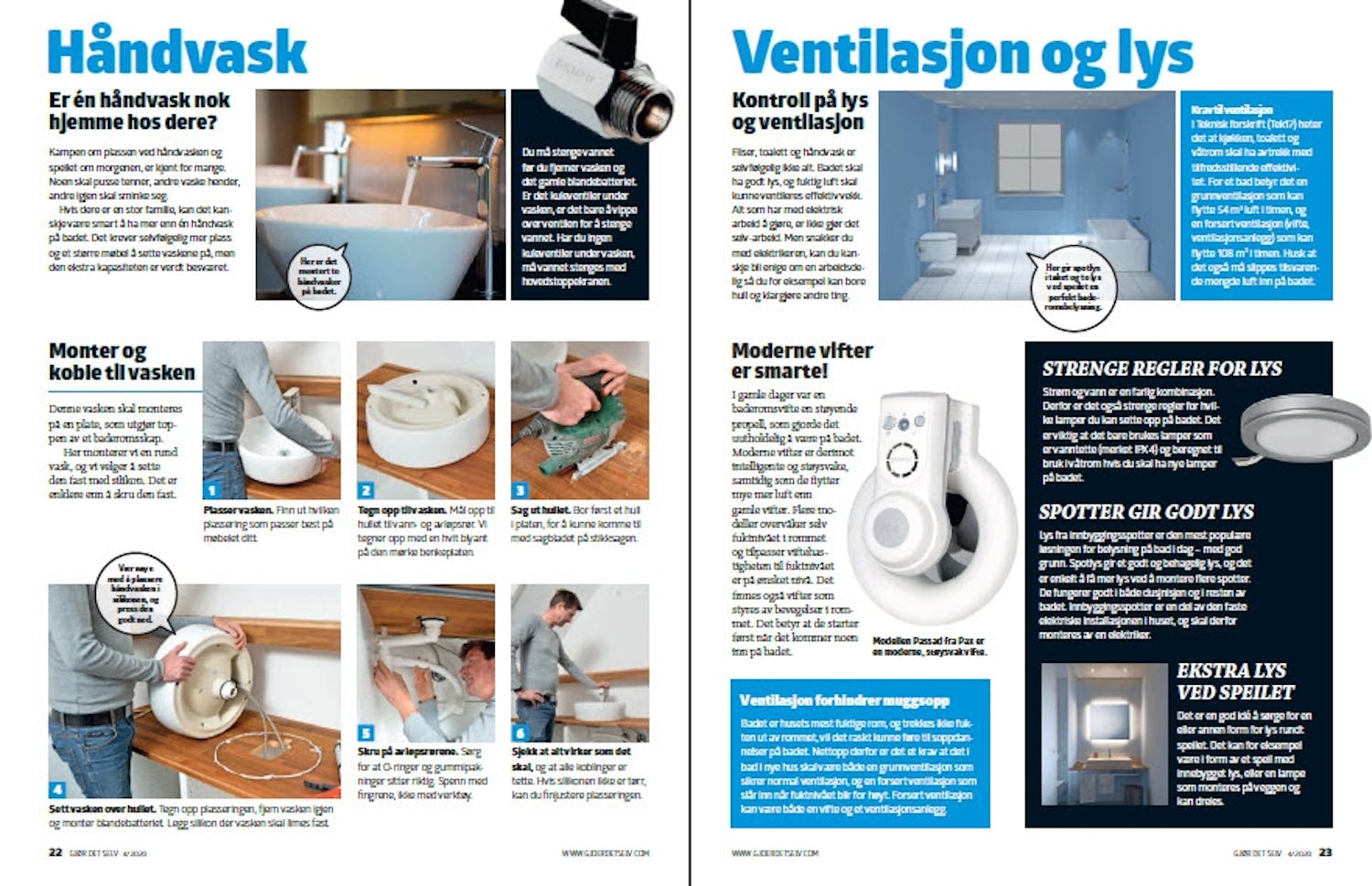 Den ferdigblandede massen kan påføres med enten et glattebrett, en bred sparkel eller en bred pensel. Ettersom massen skal påføres en vegg og ikke et gulv, foretrekker vi å bruke en pensel. Fremgangsmåten kliner minimalt, og det er enkelt å komme til i hjørner, rundt blandebatteriet og så videre.