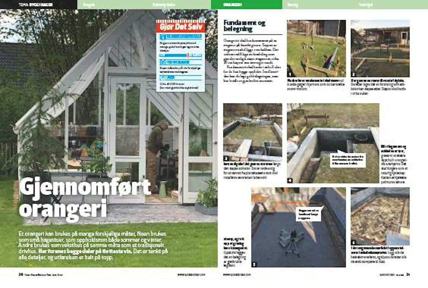 Orangeriet skal fundamenteres på en ringmur på frostfri grunn. Toppen av ringmuren skal ligge over bakken. Det ordnes ved å lage en forskaling som gjør det mulig å støpe ringmuren cirka 20 cm høyere enn terrenget rundt.