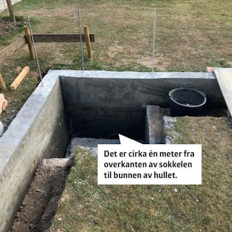 Her graves en renne til frostfri dybde. Deretter lages det en forskaling som sokkelen kan støpes etter. Støpen skal herde i cirka 3 uker.