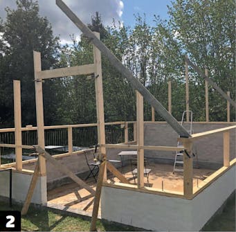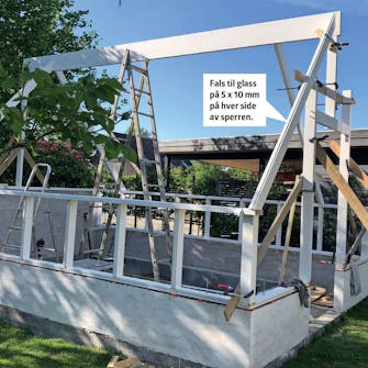 Monter sperrene over hver av de loddrette stenderne. Oversiden av sperren skal ligge plant mot siden av toppsvillen.