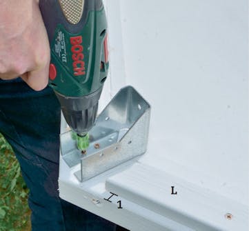 Siderammene settes på plass, og spennes fast med et par tvinger. De skrus utenpå front- og bakrammen med 5 x 80 mm skruer. Sørg for at de to rammene står helt i vinkel. Skru dem til plattformen gjennom de nederste listene.