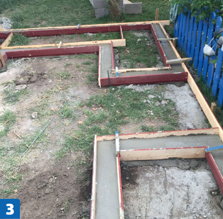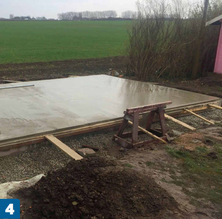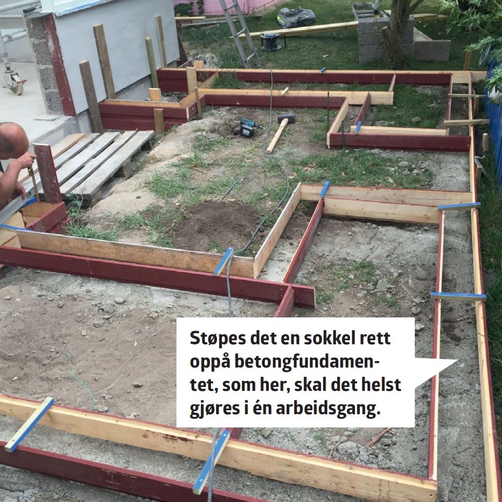 Rett opp grundig. Toppen av den støpte sokkelen skal være vannrett hele veien rundt. Er den ikke det, må lecablokkene senere tilpasses individuelt.
