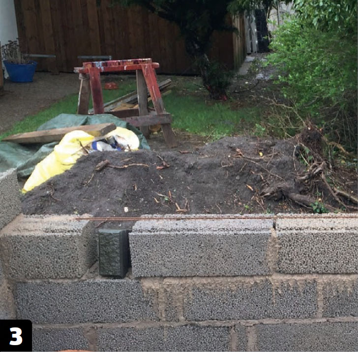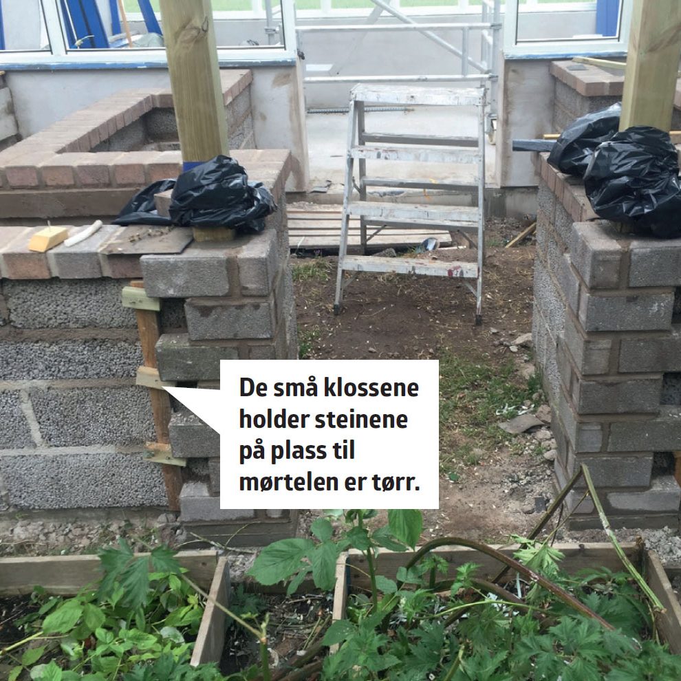 Høybedet står på en ringmur og blir murt opp av lecablokker.