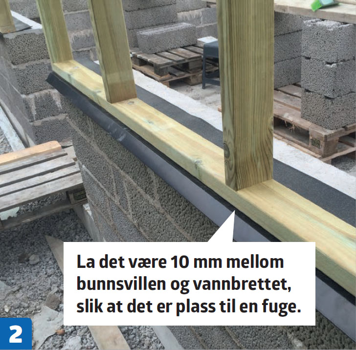 Bruk et vannbrett under bunnsvillen. Unngå at regnvann ødelegger murveggen. Det gjøres ved å montere et vannbrett under bunnsvillen.