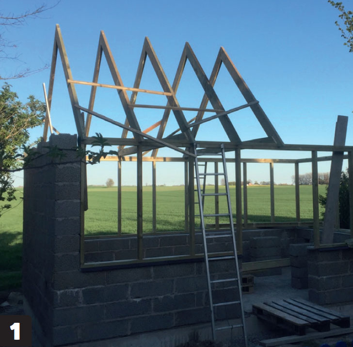 Når ruten er på plass, holdes den av et bord som skrus fast oppå sperrene.