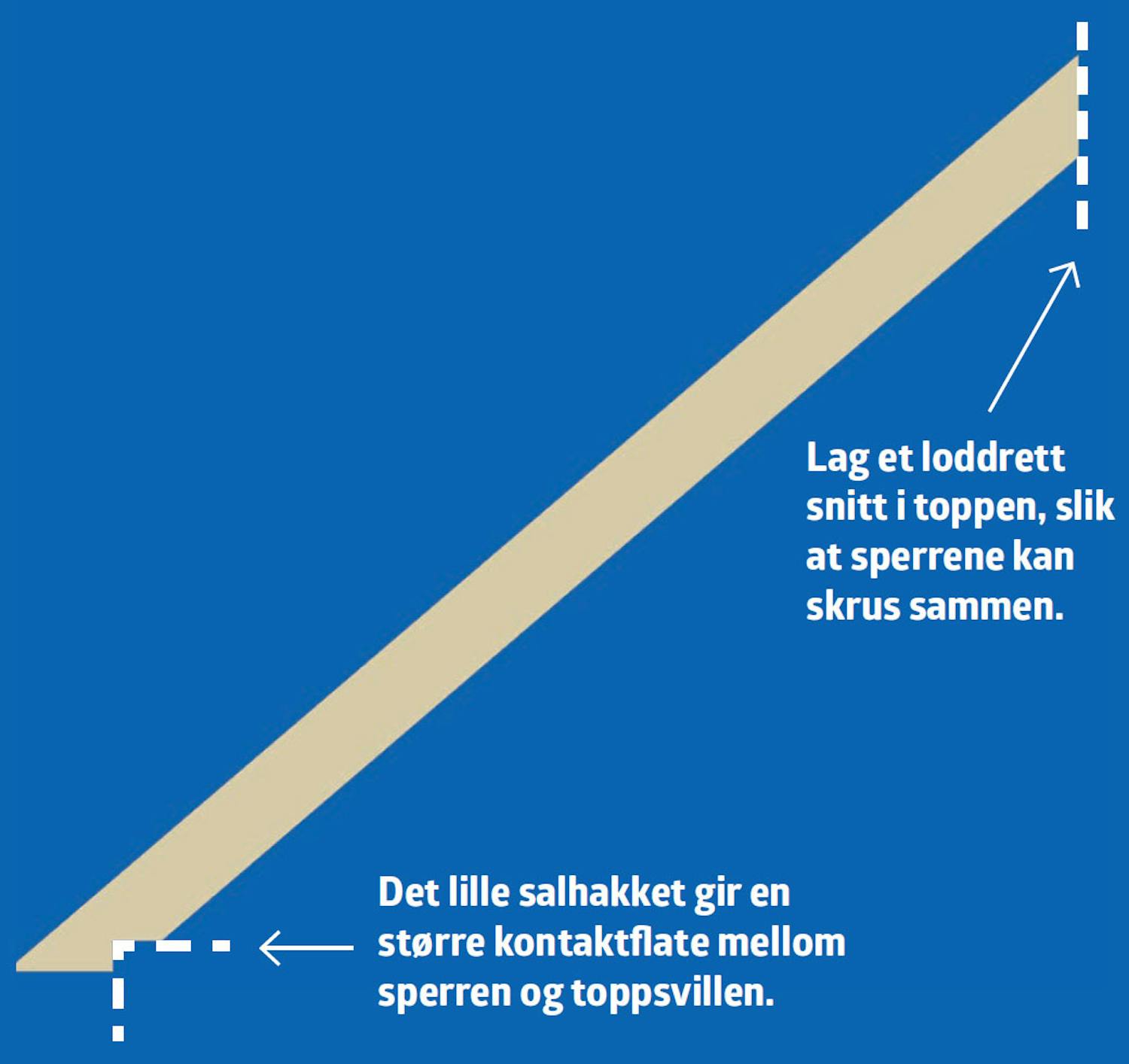 Ved “takfoten” i bunnen kappes sperren slik at enden blir vannrett.