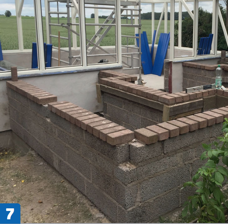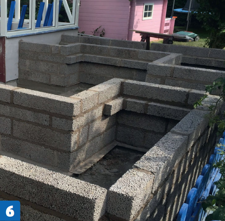 Bygg høybedet. Bedets kanter består også av lecablokker. Her brukes smalere blokker enn på orangeriet.