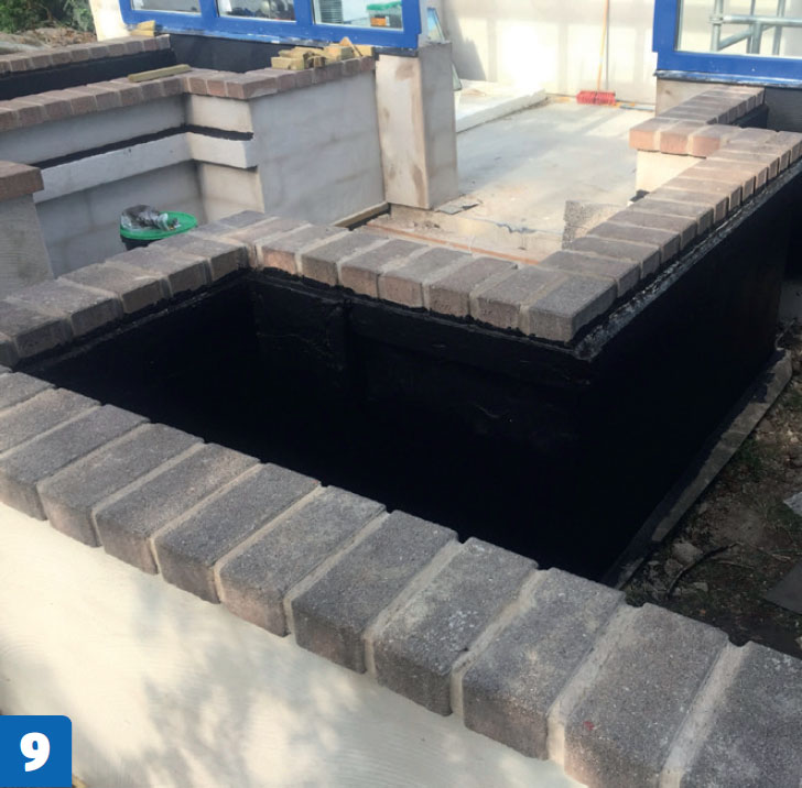 Puss utsiden opp til vannbrettet. Det er viktig at du får tettet godt under vannbrettet. Hvis du ikke får det helt tett med pussmørtelen, kan du eventuelt tette med en byggfugemasse til slutt.