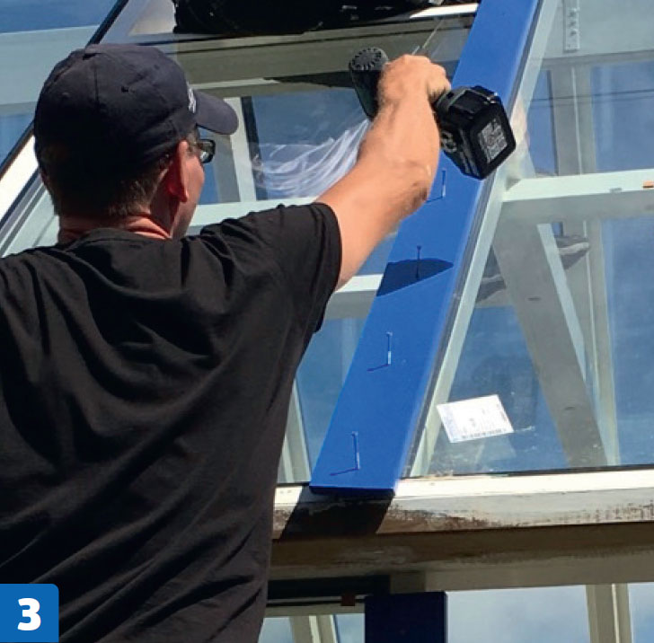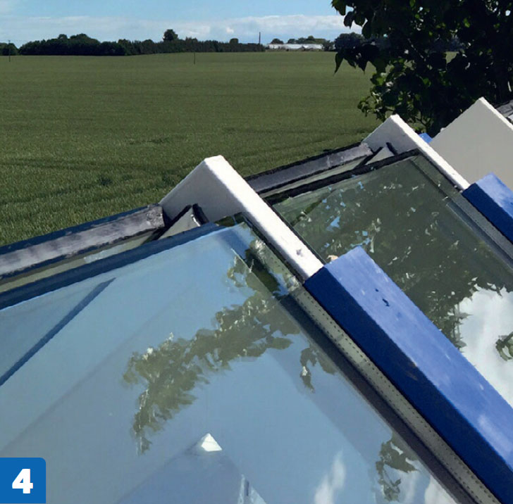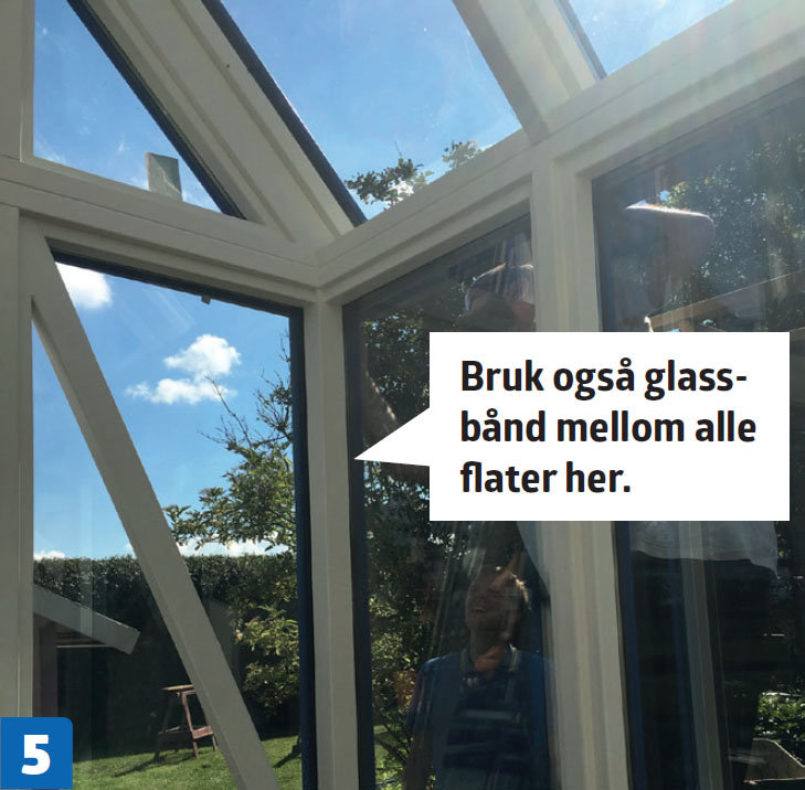 Mellem rute, lekt og dekkbord tettes det med et selvklebende glassbånd.