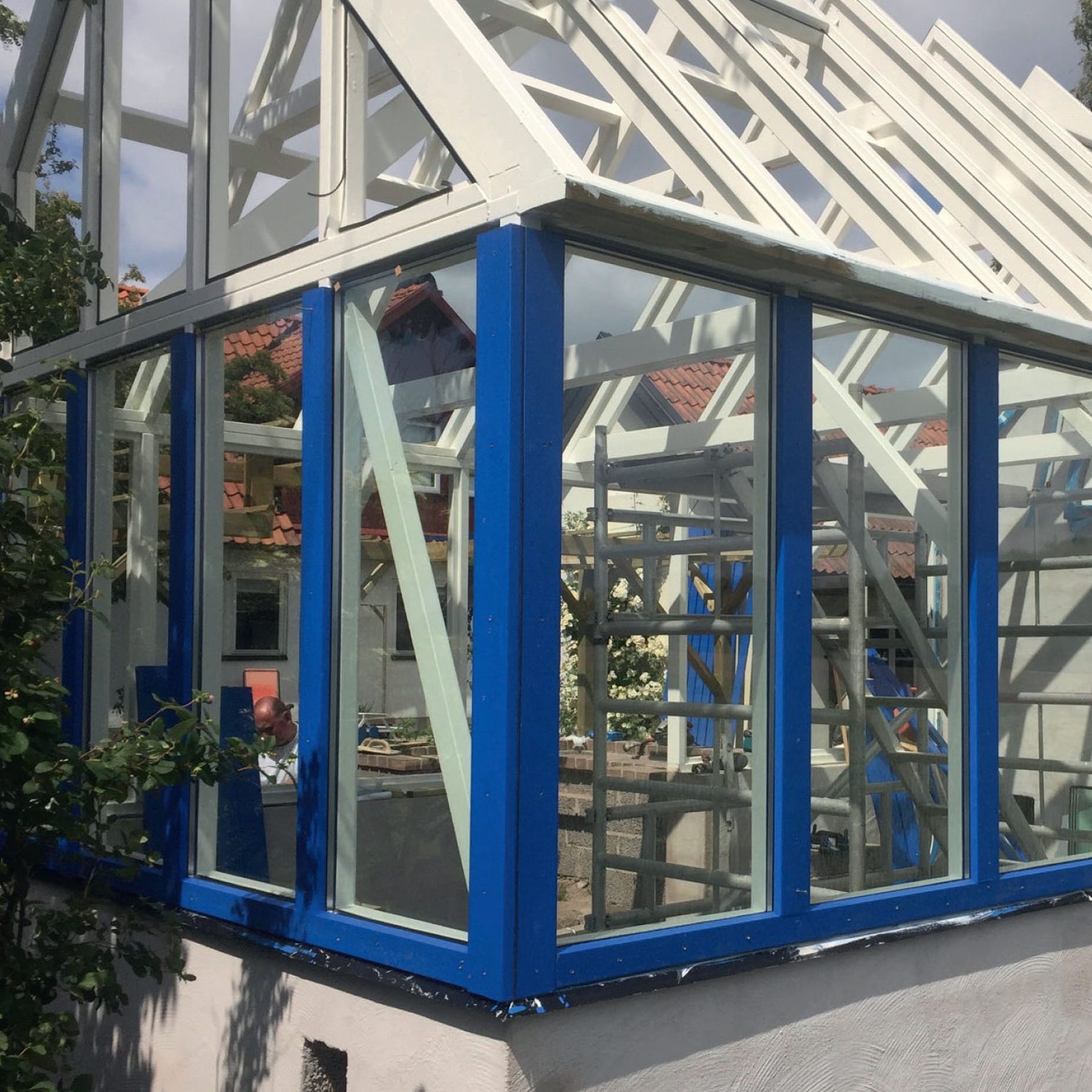 Mellom sperrene på orangeriet legges det ned termoruter som takkledning.