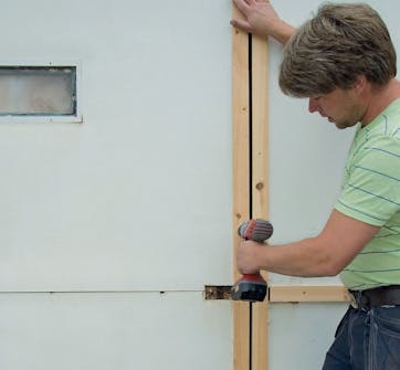 Før du skrur fast noe på den gamle garasjeporten, skal du ha en ren og jevn overflate å arbeide på. Håndtak, og andre deler som stikker ut, fjernes. Før porten rengjøres, bør du kontrollere om alt gammelt treverk fortsatt er friskt, eller om det er noe som skal skiftes.