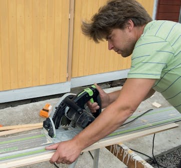Nå kan du sage panelbordene på mål - du kjenner lengden, og kan regne ut hvor mange bord som skal brukes for å dekke hele fasaden.