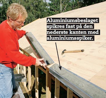 Før du går i gang med å legge takbelegg, skal taket gjøres klar med framkantbord (stussbord) og vindskier. Når det er på plass, skal du feste et aluminiumsbeslag på den nederste kanten av taket.