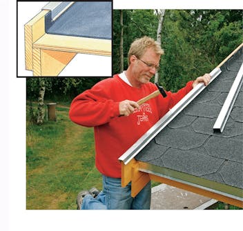 Med takshingel opp mot vindskiene og ei aluminiumslist over, er taket godt sikret mot fuktighet.
