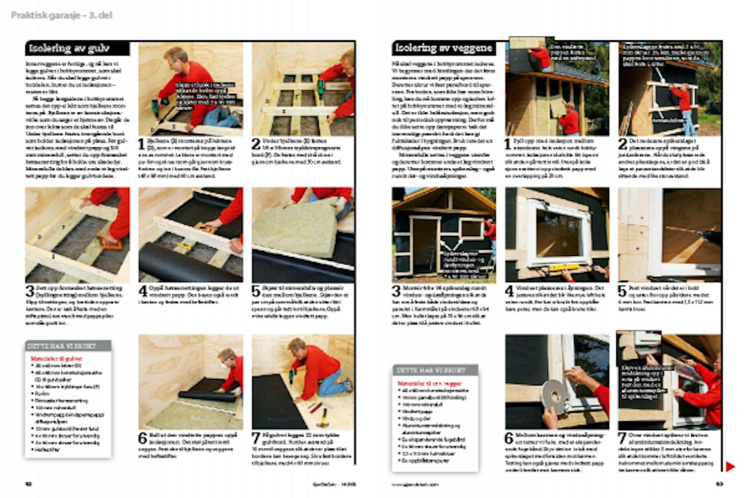 Innerveggene er ferdige, og nå kan vi legge gulvet i hobbyrommet, som skal isoleres. Når du skal legge gulvet i boddelen, kutter du ut isolasjonen - resten er likt.