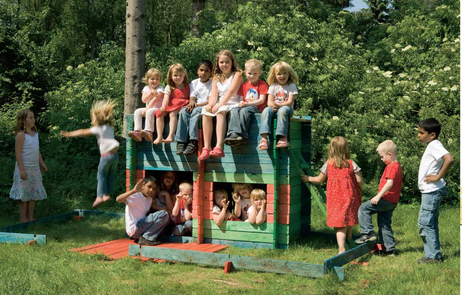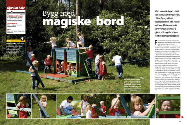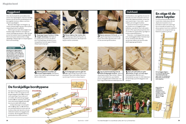 Dessuten er prisipppet det samme som med byggebordene: Kantene skje-res av, så barna ikke slår seg, og sporene utføres på samme måte med kappsag og stemjern.