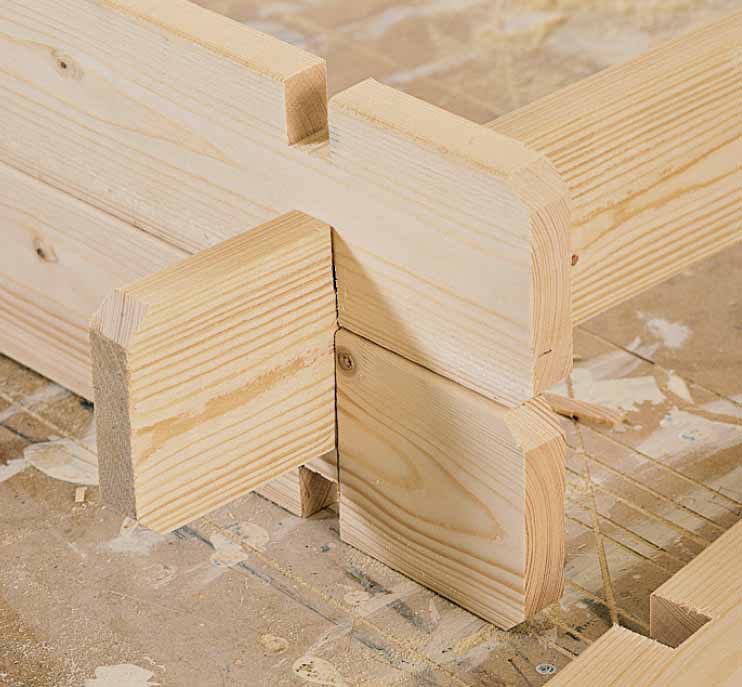 Gulvbordene, som også kan brukes til tak eller som den vannrette del av en benk eller kjøpmannsdisk, er bare for-synt med et spor i hver ende - og et i midten på de lengste bordene.
