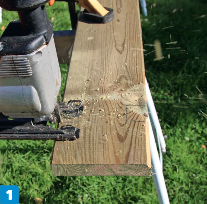 Unngå å stemme i kvister Hvis du er uheldig, og det er en kvist i treet akkurat der du har tegnet opp til et hakk, så la være å bruke stemjernet. Sag i stedet fra begge sider med stikksagen. Det tar litt lenger tid, men da unngår du at hele hakket brekker av.