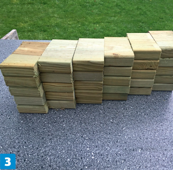 Sag ut klosser til takmodulene. De er 6,7 cm lange, og sikrer at takmodulene griper godt tak i veggene. Det går fort hvis du seriekapper alle klossene.