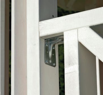 • Lim, 14 vinkelbeslag, 5 x 35 mm beslagskruer, 4 x 60 mm skruer, 5 x 100 mm skruer, 5 lt grunningsolje, 5 lt trebesk.