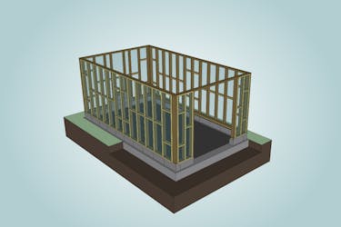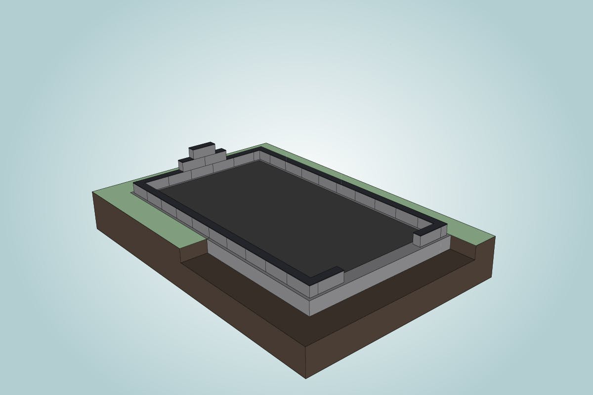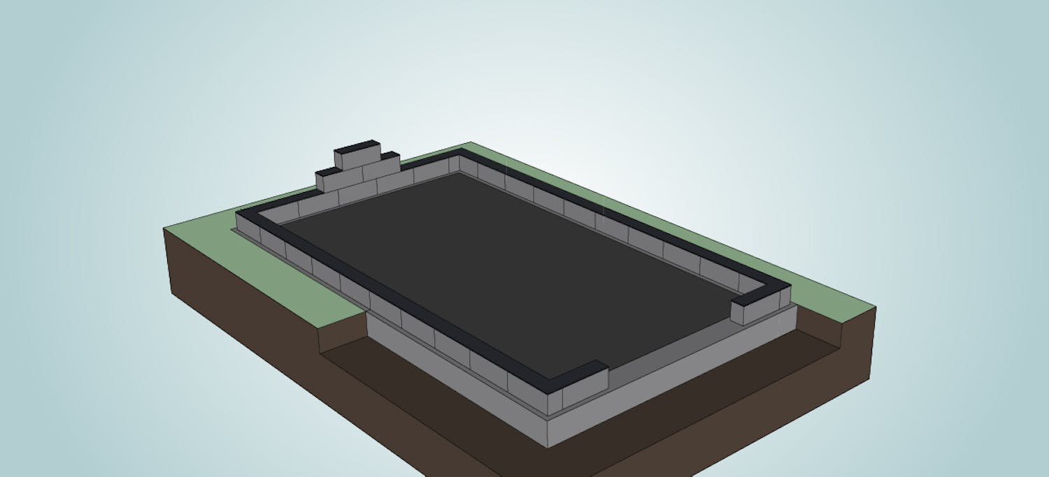 Kravene til et fundament avhenger like mye av grunnen og klimaet, som av bygningen som skal stå på det. Fordi dette er en godt drenert morenegrunn, nøyer vi oss med en lav ringmur, støpt på det samme bærelaget av knust pukk som ligger under belegningen inne i orangeriet. Er grunnen du bygger på leirete eller fuktig, bør du frostsikre bedre enn dette.