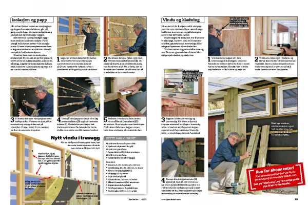 Vinduet settes i og tettes både inne og ute. Deretter gjenstår bare å sette kledningen på utsiden og male den.