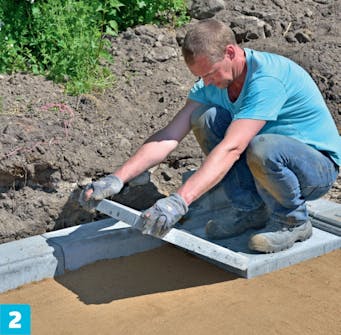 Oppå bærelaget legges det et avrettingslag på 2-3 cm, som rettes opp. Legg et par lange rør og rett opp overflaten så den blir helt rett.