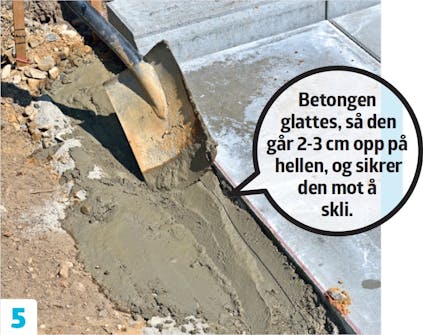Sørg for å bruke vateret flittig. Både når du støper stolpesko og når du skal justere de bærende svillene i bunn og topp.