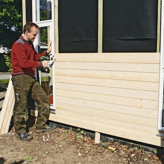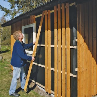 Slik gjør du: På en enkel utebod, settes kledningen ofte rett på reisverket, mens den settes på avstandslister eller spikerslag der du skal ha lufting bak kledningen utenpå en vindsperre.