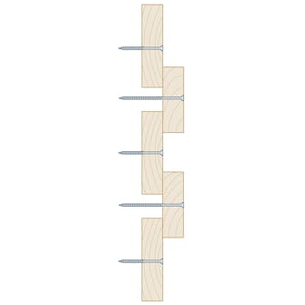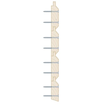 I lektene sitter det også en skrue per skrue spikerslag eller avstandslist, litt forskjøvet fra midten. Skruen skal ikke gå gjennom underliggerne. Skruen skal være minst tre ganger lektens tykkelse.