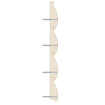 Det skal sitte én skrue i hvert bord ut for hver underliggende lekt eller avstandslist. Skruen skal settes cirka 30 mm opp i forhold til underkanten på bordet. Dermed holder hvert bord fast overkanten til bordet under.
