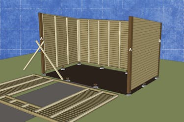 De loddrette inndekkingene skrus fast langs sidene på utebod 5