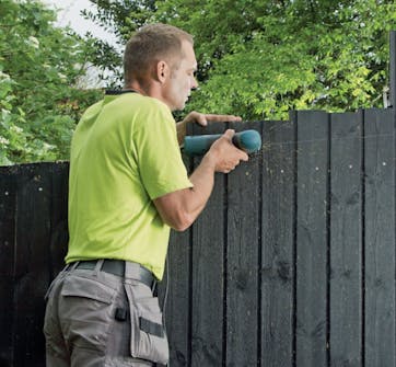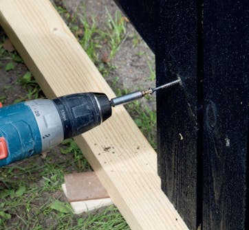 Når du skal plassere stolpene, som i siste instans skal bære skjulet, er det enklest å styre den innbyrdes plasseringen ved hjelp av en lang lekt, som du markerer plasseringen på. Da kan du hele tiden justere stolpene presist underveis.