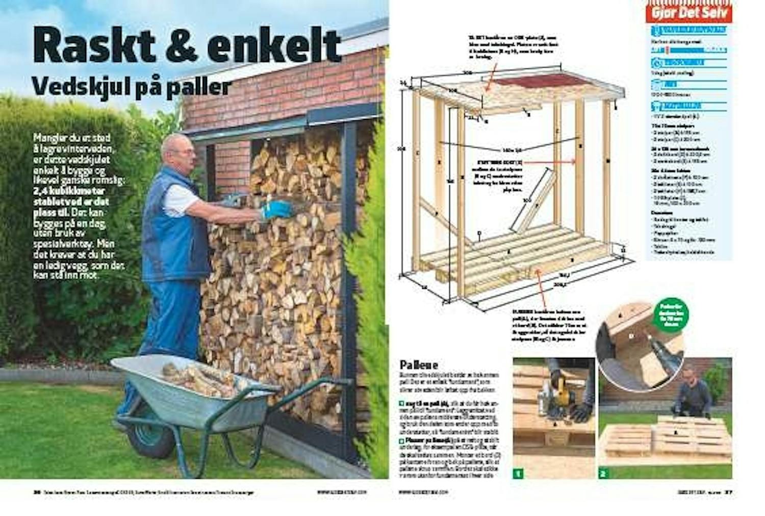 Bunnen til vedskjulet består av halvannen pall. Det er et enkelt “fundament”, som sikrer at veden blir løftet opp fra bakken.
