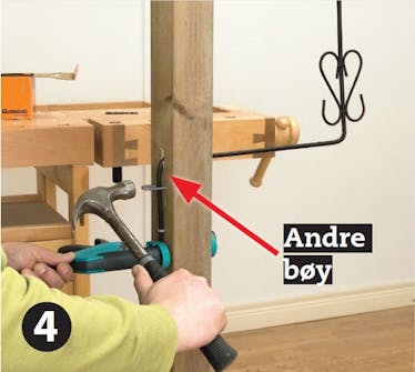 Begge bøyene er 90 grader. Første bøy skal lages rett under utsmykningen. Annen bøy planlegges slik at blusset sitter 30 cm vekk fra stolpen.