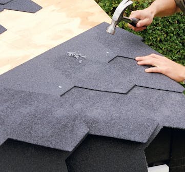 Taket kles med pappshingel, som spikres fast med pappspiker.