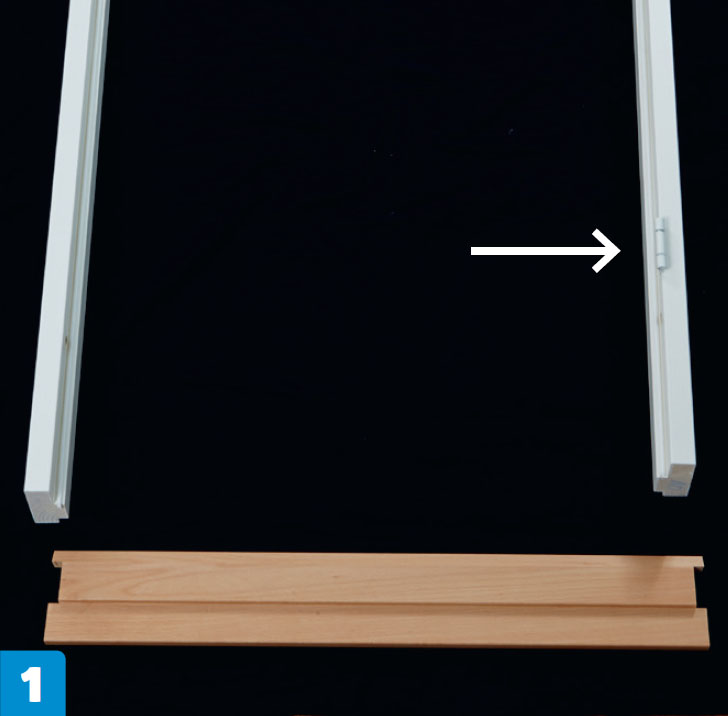 Sett tre skruer gjennom de tre forborede hullene, slik at toppstykke og karm bindes solid sammen. Gjør dette i begge sider.