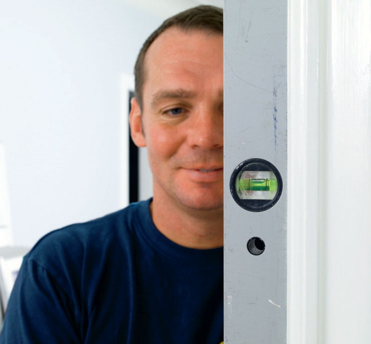 Start med å ta falsmålet, og sjekk om karmen er i lodd og vater. Det er spesielt viktig å måle bredden på falsen, ettersom dører finnes i flere tykkelser.