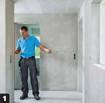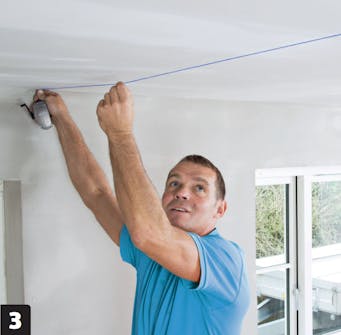 Lag en strek fra den ene til den andre siden, både i taket og på gulvet. En krittsnor er enkel å bruke, men en rettholt eller et annet langt, rett anlegg kan også brukes.