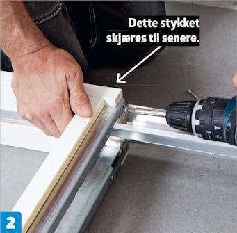 Skru sammen karmens side- og overstykke. Forbor, og gi sammenføyningen litt trelim, slik at den blir ekstra sterk.