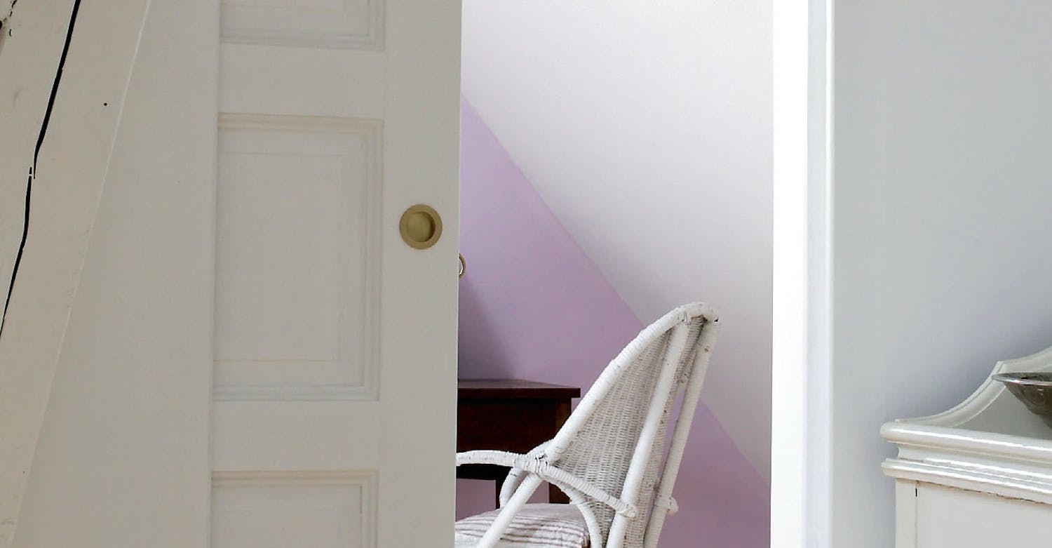 Hjørnet mot skråveggen sages av slik at døra kan gå helt inntil veggen. Forsterk døra med ei list som du limer og skrur fast slik at dørramma ikke mister sin styrke.