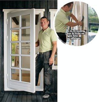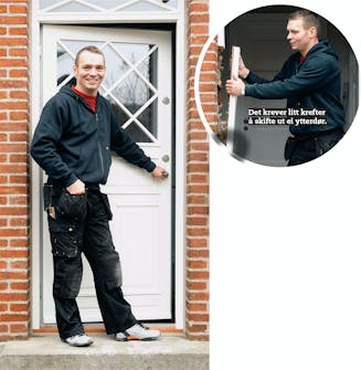I trehuset krever det ikke store investeringer i verken materialer eller verktøy for å skifte ut ei ytterdør. Og med litt forsiktighet kan du i tillegg bruke om igjen lister og utfôringer til den nye døra. Vær klar over at døra er tung.