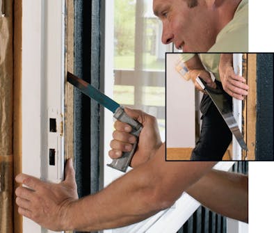 Fjern de utvendige listene. Skal du bruke dem om igjen, kan du begynne med å skjære dem fri med en hobbykniv. Fjern listene, og rengjør.